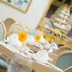 Alle 120 elegante værelser byder på et mini køleskabsbar, terrasse-restauranten og en personlig værdiboks samt egne badeværelser med separat toilet og en bruser. Nogle rum har udsigt over gårdhaven. De har et enestående interiør.